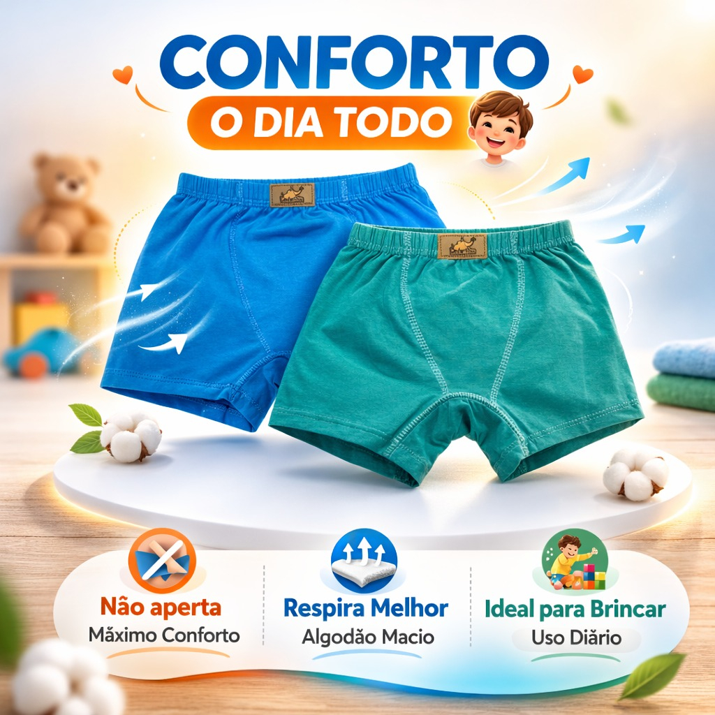 Kit Cueca Boxer Infantil Confortável Respirável Forro 100% Algodão Antialérgica Elástico Premium