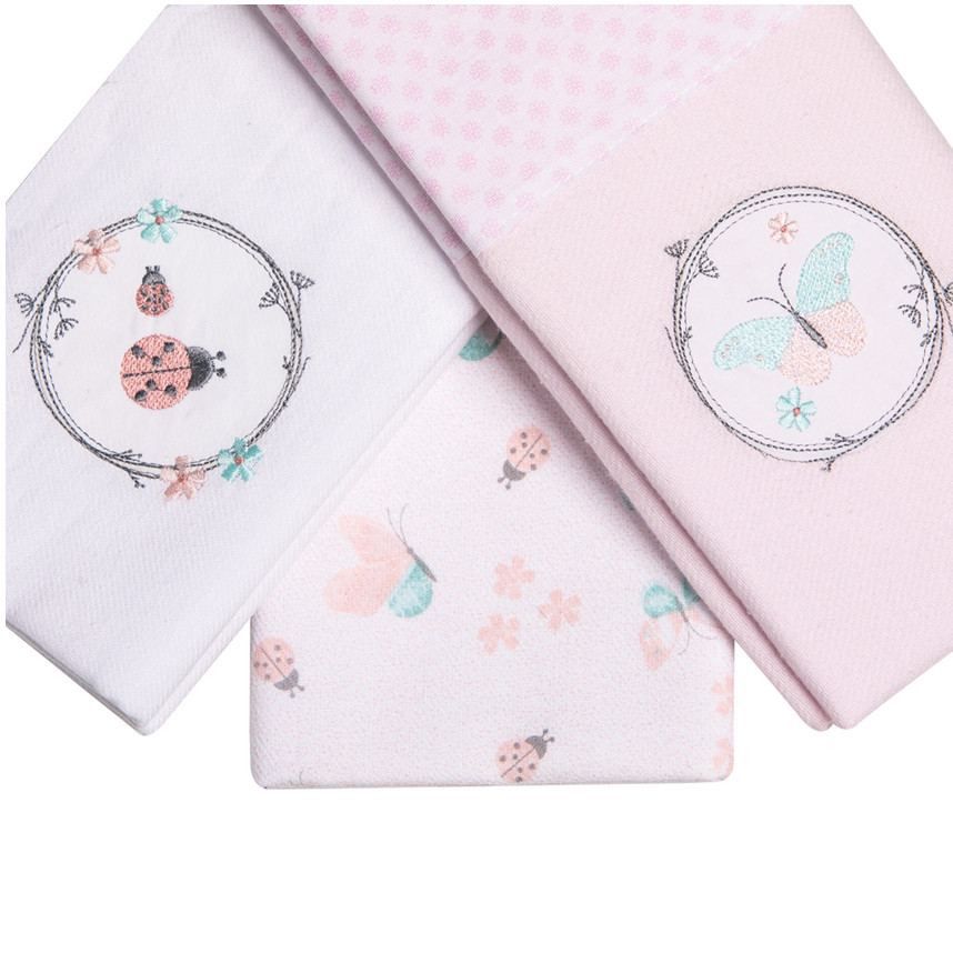 Kit Cueiro Papi Bordados Karinho Borboleta - 03 Peças O kit Cueiro da linha Bordados Karinho da Papi possui 03 peças confeccionadas em tecido 100% algodão super macio estampado e bordado.O Cueiro é indispensável no enxoval, pois pode ser usada para forrar berço, carrinho, moisés e onde mais o bebê for deitar, além de possuir estampa fofa e manter o bebê quentinho. Informações Adicionais:Tamanho: Único Cores: Rosa Referência: 3822-1771 Dimensão aproximada: 80cm x 80cm Marca: Papi