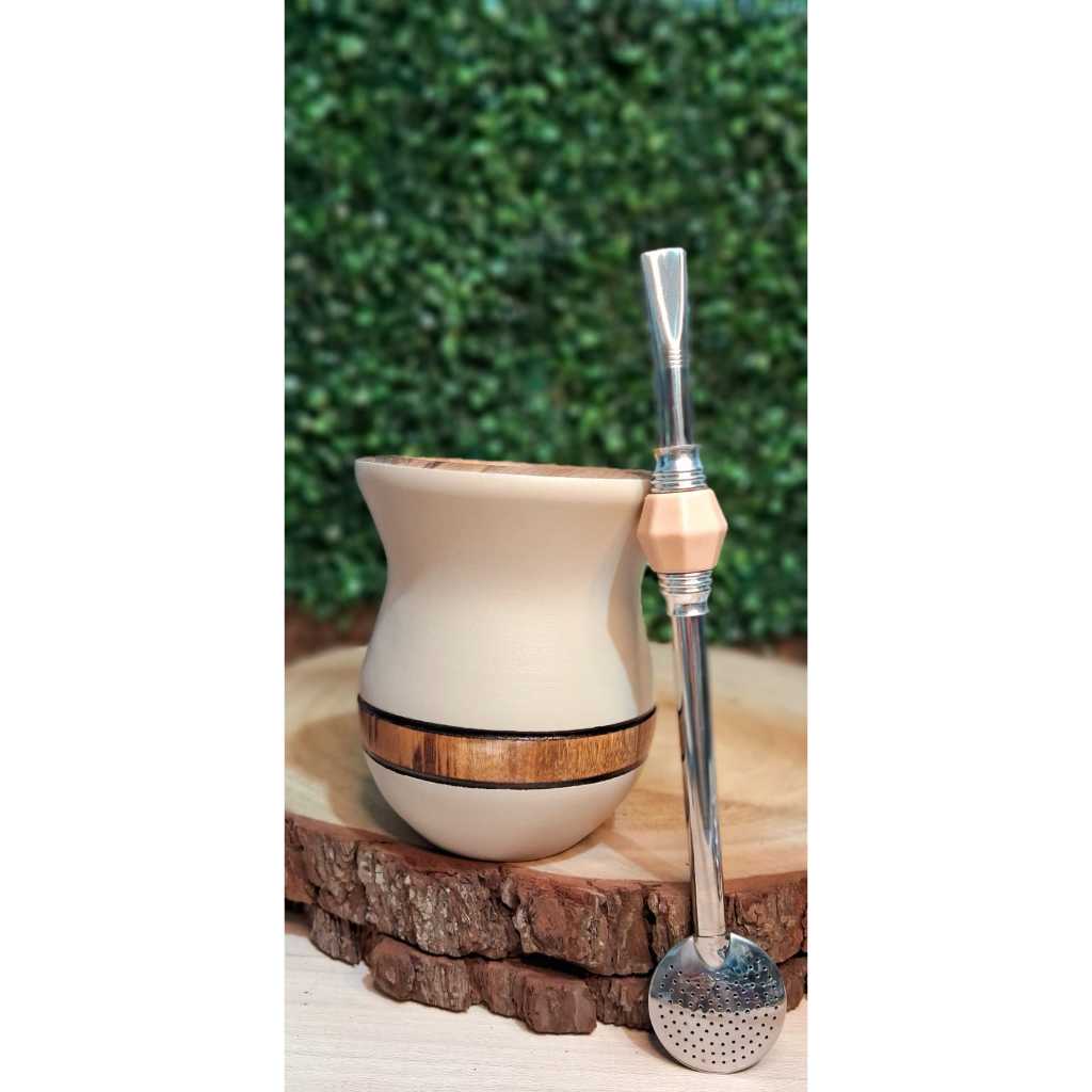 Cuia em madeira Imbuia de alto padrão + bomba inox com pintura. Com aproximadamente 14 cm de altura e 10 cm de bocal. > Bomba INOX< Nossas cuias são produzidas de forma artesanal, podendo ocorrer pequenas variações de tamanho, mas sempre mantendo os padrões de qualidade e acabamento. Não é necessário realizar a cura do material antes do primeiro uso, somente lavar com água em temperatura ambiente ou morna antes de utilizar. Não deixe a cuia parada com água quente antes do primeiro uso, para evitar rachaduras na madeira seca. Para limpeza após o uso e maior durabilidade de sua cuia, utilize água corrente em temperatura ambiente e produtos não abrasivos (evite escovas, esponjas e detergentes).