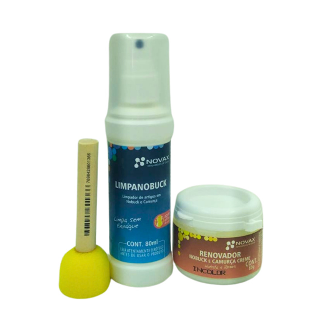Kit Cuidado Nobuck: Limpeza Sem Enxágue e Hidratação Profunda renovador incolor 60g+limpa nobuck+ esponja keramik ref 03