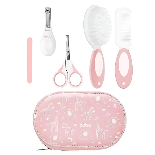 Kit Cuidados Bebê Estojo Buba Higiene Infantil Manicure Recem Nascido Escova Pentinho Cortador Bebe