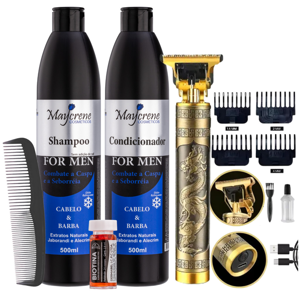 Kit Cuidados Masculino Shampoo, Condicionador Anticaspa + Ampola Crescimento + Maquininha + Pente