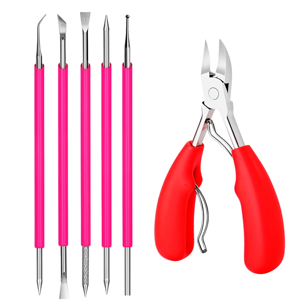 Ideal para quem busca um conjunto completo para cuidar das unhas com facilidade e eficiência. Este kit conta com dois alicates com cabos vermelhos emborrachados que garantem firmeza, corte preciso e maior conforto nas mãos. Um alicate é ideal para cortar cutículas e o outro para unhas grossas, oferecendo versatilidade no cuidado diário. As cinco ferramentas com cabos em silicone rosa e pontas em aço inox complementam o kit com opções para empurrar cutículas, raspar resíduos e realizar acabamentos com precisão. O material inoxidável facilita a higienização, sendo durável e resistente ao uso contínuo. Com design ergonômico e moderno, esse conjunto atende às necessidades de quem deseja unhas limpas, bem cuidadas e com aparência impecável. Benefícios do Produto: Cortar cutículas e unhas com alicates de corte afiado e preciso Garantir firmeza e conforto com cabos emborrachados e ergonômicos Remover peles e resíduos com ferramentas de ponta fina e resistente Utilizar materiais duráveis e fáceis de limpar Montar uma rotina completa de cuidados com as unhas Indicado para: uso em casa, cuidados diários com unhas das mãos e dos pés, pessoas que valorizam aparência e higiene