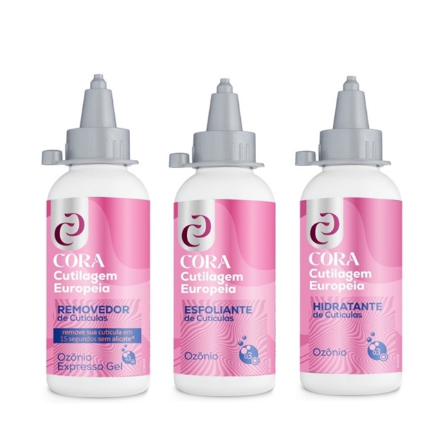 Kit Cutilagem Europeia REMOVEDOR + ESFOLIANTE + HIDRATANTE Cora OZÔNIO 100ml
