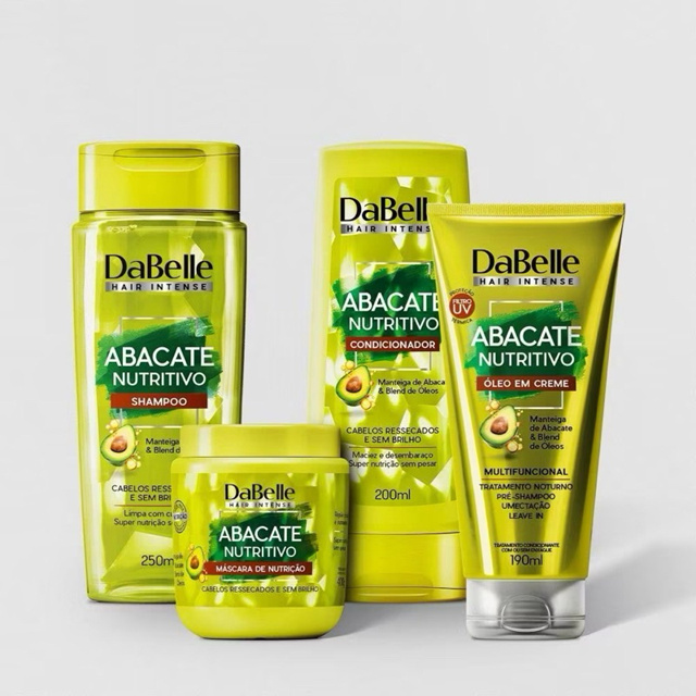 | Kit Dabelle Abacate Nutritivo Shampoo, Condicionador, Oléo Em Creme... este produto | R$ 62,39 | 5% | 4.9/5 | 146 |
