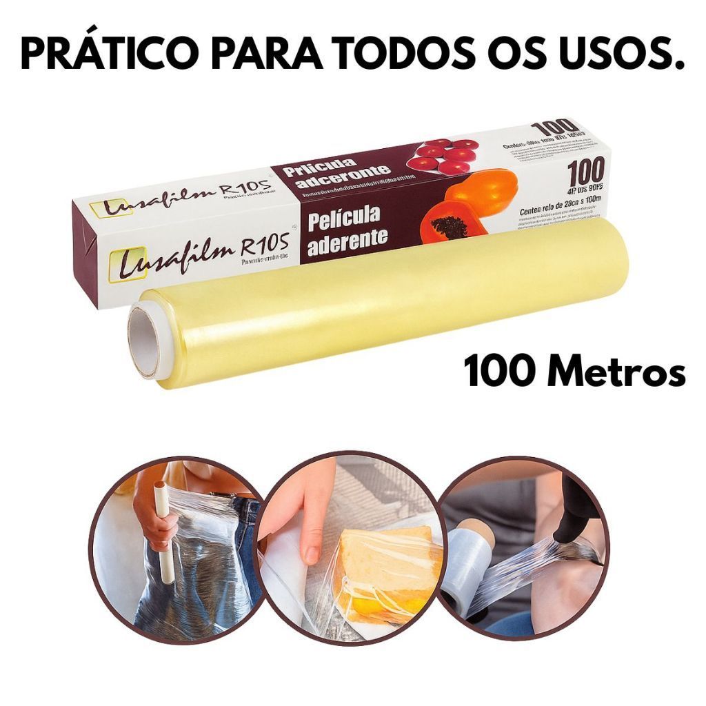O Kit 3 Rolos Plástico Filme PVC 28cm x 100 Metros (Total 300m) é a solução perfeita para embalar, proteger e conservar alimentos de forma prática e higiênica. Fabricado com material de alta qualidade e aderência, este filme garante vedação eficiente, mantendo a frescura e o sabor dos alimentos por muito mais tempo. Ideal para uso doméstico, comercial e profissional, o filme aderente é amplamente utilizado em cozinhas, restaurantes, lanchonetes, padarias, açougues e deliverys. 🍎 Principais Benefícios ✅ Alta aderência e resistência – envolve facilmente qualquer superfície ou recipiente. ✅ Transparência cristalina – permite visualizar o conteúdo sem precisar abrir. ✅ Mantém a conservação dos alimentos – ideal para frutas, legumes, frios e carnes. ✅ Uso versátil – pode ser utilizado em embalagens de produtos, transporte e armazenamento. ✅ Tamanho ideal (28cm x 100m por rolo) – ótimo custo-benefício com 300 metros no total. ⚙️ Especificações Técnicas Material: PVC aderente Largura: 28 cm Comprimento por rolo: 100 metros Quantidade: 3 rolos (300 metros no total) Cor: Transparente Marca: Lusafilm (ou equivalente) Uso: Doméstico e profissional 🏆 Por que escolher este produto? Produto campeão de vendas nas principais plataformas online. Alta elasticidade e vedação. Mantém o aspecto natural dos alimentos por mais tempo. Ideal para quem busca organização, higiene e praticidade no dia a dia.