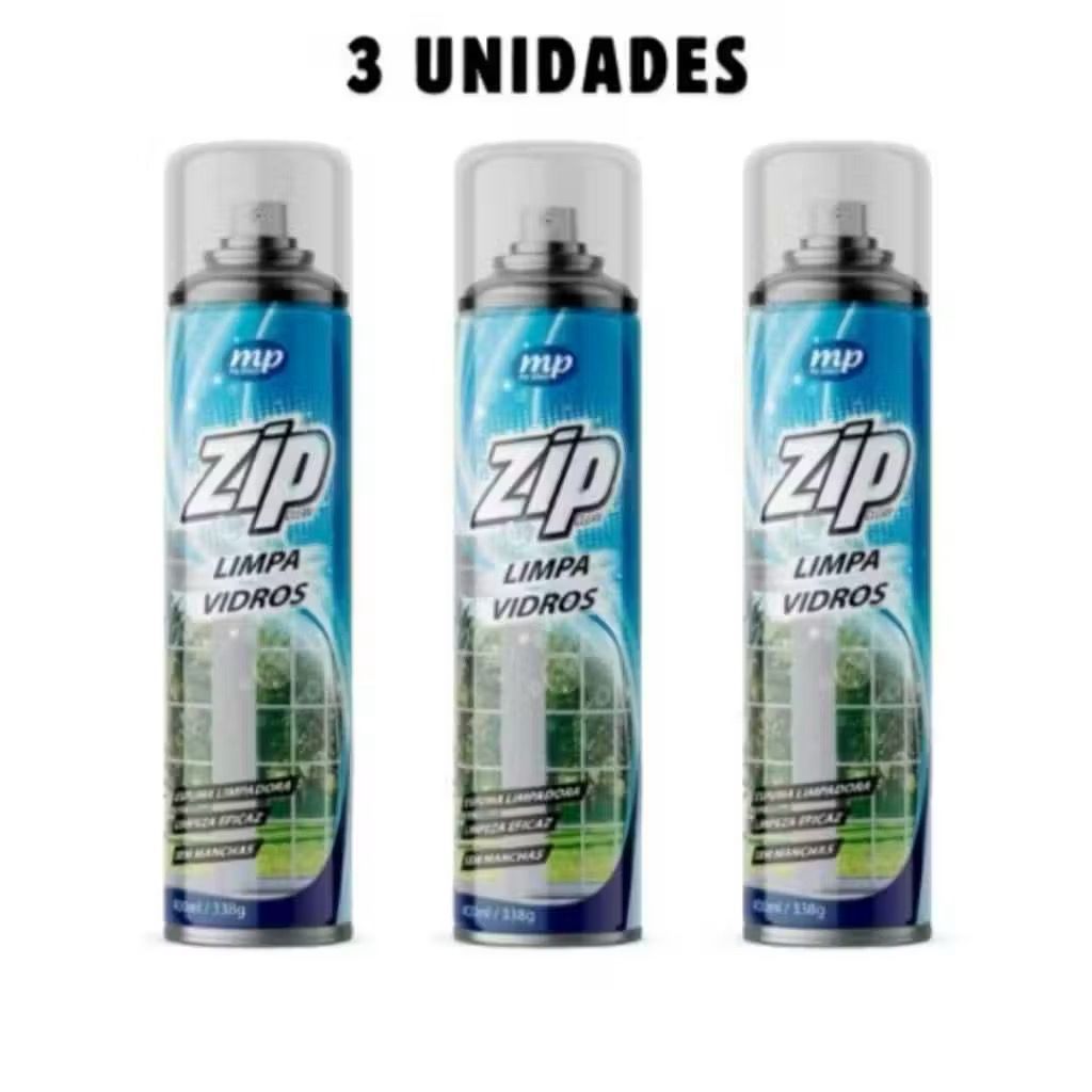 Kit de 1 a 4 Unidades Limpa Vidros Espuma Mágica Limpa a Seco Clean Spray 400 ml **ENVIO EM ATE 24H APÓS A CONFIRMAÇÃO DO PAGAMENTO** **SELECIONAR NA VARIAÇÃO A OPÇÃO DESEJADA** Kit limpa vidros spray ZIP 400 ML Ação de espuma - Alto poder de limpeza , remove Gordura de vidros , Uso em vidros em geral . Limpa vidros faz uma limpeza efetiva usando espuma , evitando manchas e trazendo mais brilho para o vidro . pode ser utilizado em espelhos , vitrines , para - brisas , acrílicos , box do banheiro , entre outros . Remove todos os resíduos sem deixar manchas . o zip não precisa de enxague . MODO DE USO : Agite bem antes de usar . Sempre utilize o zip com a tampa virada para cima . pulverize o jato sobre a superfície remova o produto com um pano seco . Qualquer dúvida entre em contato através do chat.