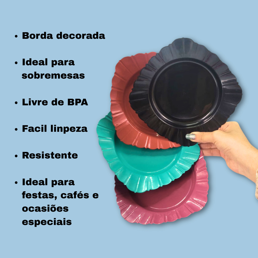 Kit de 10 a 50 Pratos de Plastico Para Sobremesa Reutilizavel Resistente Para Festas Eventos Enxoval