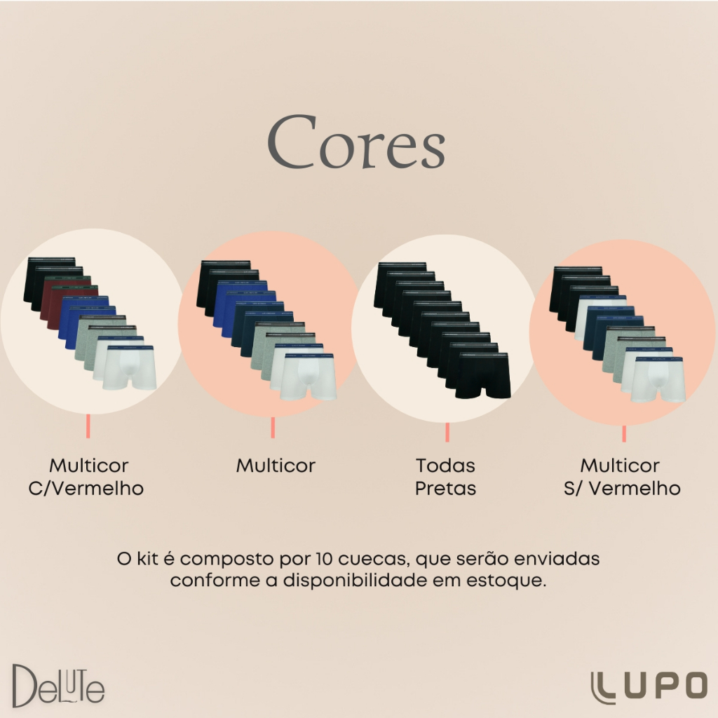 Kit De 10 Cuecas Originais Lupo Boxer Box Básica Em Algodão Cotton Com Elastano