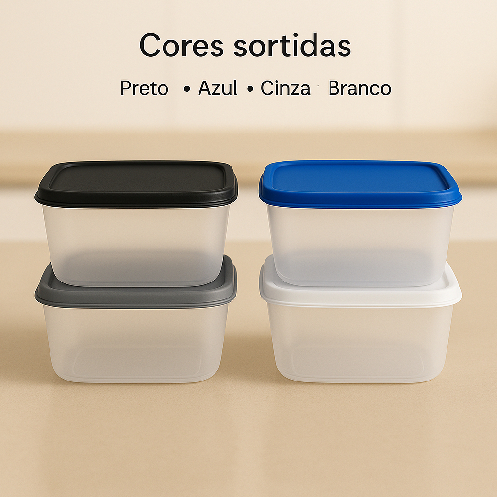 🌟10 Potes Retangulares Transparentes de 1 Litro com Tampa BPA FREE 🌟 CORES DE TAMPA SORTIDAS : AZUL , CINZA , BRANCO , PRETO POTE 1000 ML , MEDIDAS : 16X16X7 cm ( CxLxA) POTE 500 ML, MEDIDAS: 12,5X12,5X5,2 cm( CxLxA) Organize sua cozinha com estilo e praticidade! Apresentamos nossos potes retangulares transparentes de 1 litro, perfeitos para armazenar alimentos de forma segura e eficiente. Com dimensões de 7 cm de altura, 15 cm de largura e 15 cm de comprimento, eles são ideais para qualquer espaço. ✨ Características: - Material Transparente: Permite visualizar o conteúdo facilmente. - Tampa Hermética: Garante frescor e proteção contra umidade. - Versatilidade: Podem ser utilizados no micro-ondas, freezer e lava-louças, facilitando seu dia a dia. Seja para armazenar sobras, preparar refeições ou organizar ingredientes, nossos potes são a escolha perfeita! Aproveite e leve já o seu