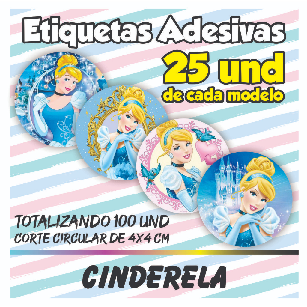 Kit De 100 Etiquetas Adesivas Cinderela