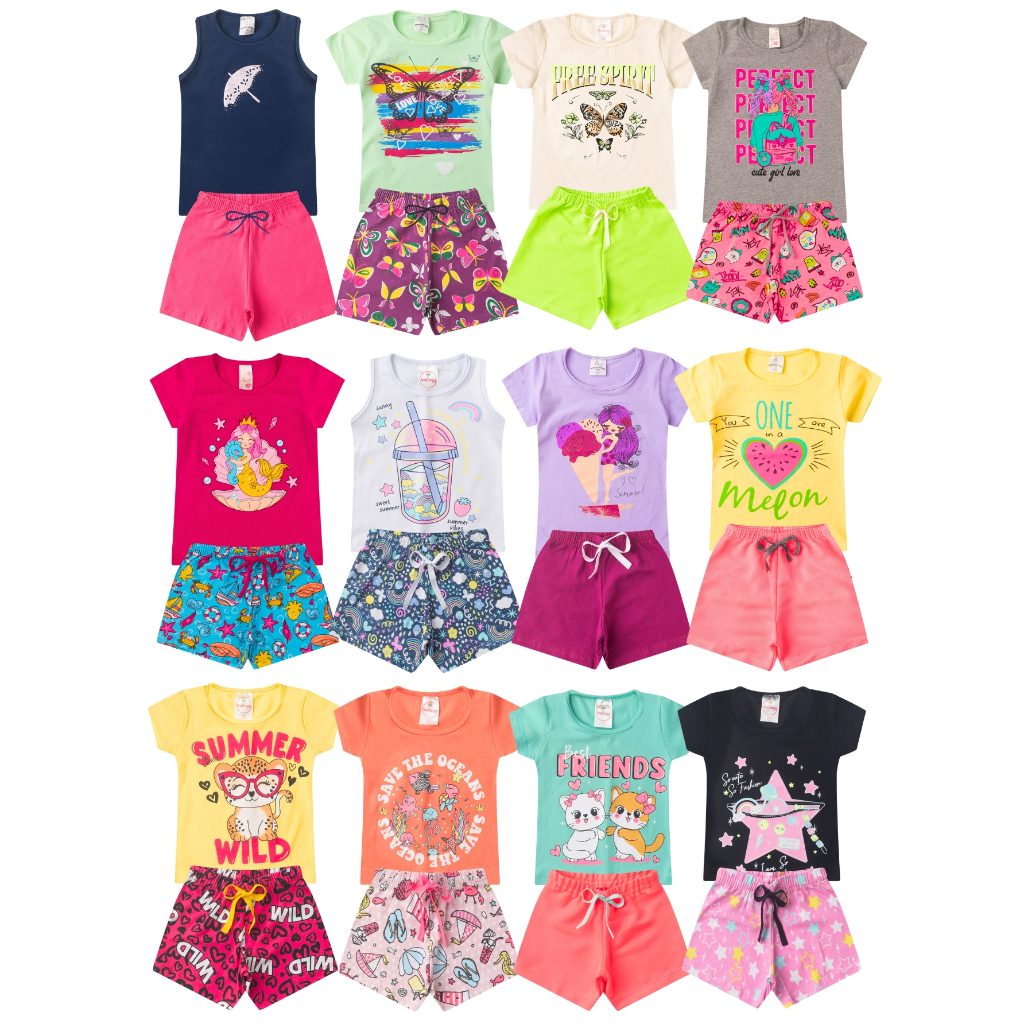 Kit de 2, 6 ou 10 Peças Sortido de Roupa Infantil Menina Conjunto Verão Feminino