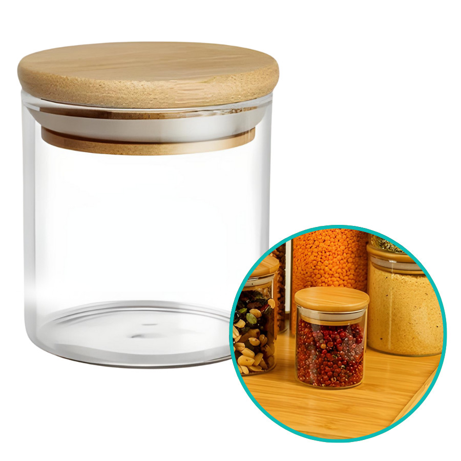 Kit De 2 Potes Hermético Mantimento De Vidro Com Tampa Bambu 200ml