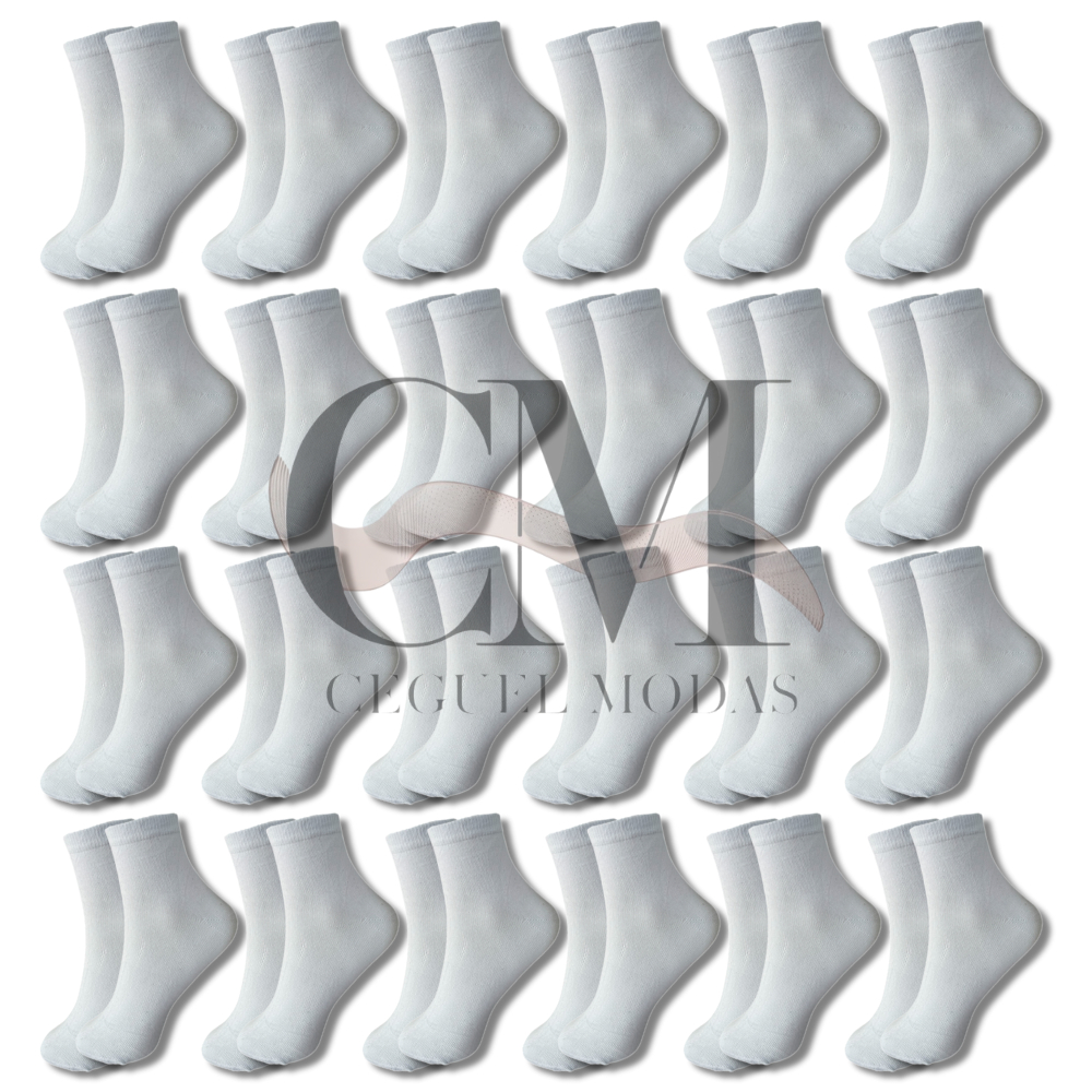 Kit de 3,6,9,12,15,18 e 24 Pares Meia de Cano Médio BRANCA com Algodão