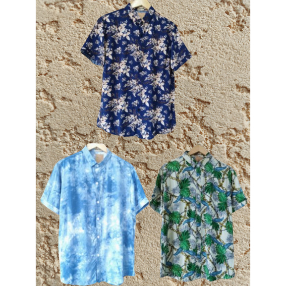 kit de 3 CAMISA MASCULINA Camisa Camiseta Masculina Manga Curta Estampada Com Botões Social Floral
