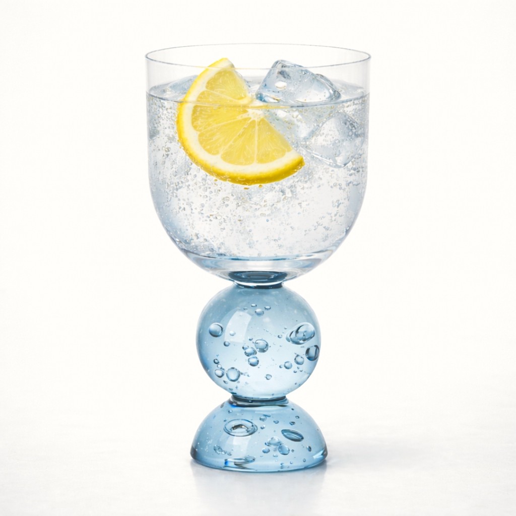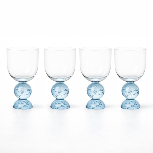 Kit de 4 taças de vidro com base azul esfera bubble glass 380 ml