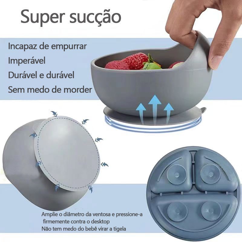 Lindo kit de silicone para bebês para ajudar na introdução alimentar do seu bebê. Produto de qualidade, livre de BPA, resistente a altas temperaturas (até 220°C ) e baixas temperaturas ( até - 20°C) . Pode ser colocado na geladeira, forno e microondas. Instruções de uso e precauções: - Não coloque diretamente em chamas quentes - Lave com detergente neutro e após o uso, guarde em local limpo e seco, longe da luz solar direta. Material: silicone Especificações: Conjunto de 9 peças Conjunto contém: babador, prato de jantar, tigela, copo, garfo e colher Medidas: Copo com canudo: 10 cm de altura e 8 cm de diâmetro Tigela: Altura 7,5 cm e 12 cm de diâmetro Babador: 25 cm de altura, 19 cm de comprimento Prato: 20 cm de diâmetro e 3 cm de altura Garfo: 14 cm de comprimento e 0,5 cm de largura Colher: 14 cm de comprimento e 0,5 cm de largura O QUE VEM NA CAIXA: -1x Babador -1x Prato Com Ventosa -1x Tigela Com Ventosa -1x Copo Com Palha -2x Colheres -2x Garfos -1x Tampa do cop