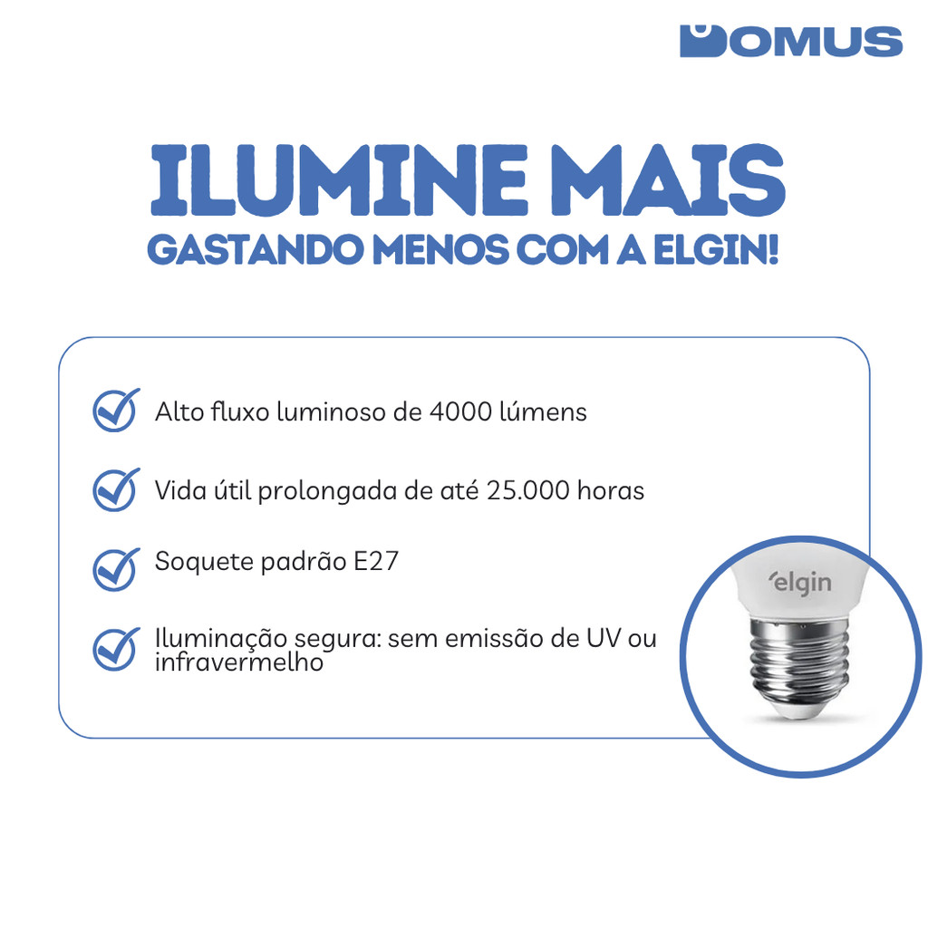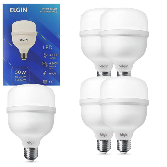 | Kit De 6 Lâmpadas Bulbo Led 50W Bivolt Branco Frio Elgin este produto | R$ 139,90 | — | 4.9/5 | 2 |