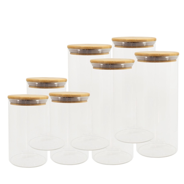 Kit de 7 Potes de Vidro Herméticos Tampa de Bambu - OIKOS