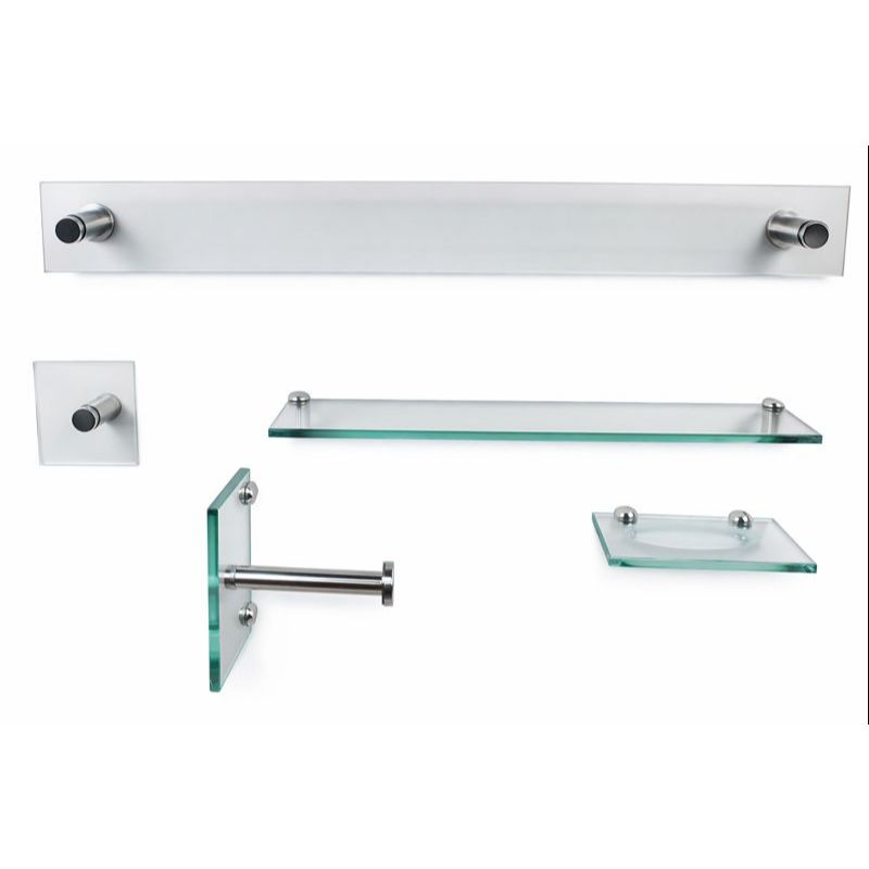 Kit De Acessorios Para Banheiro 5 Peças Em Vidro Incolor Com Acabamentos em Inox Luxo