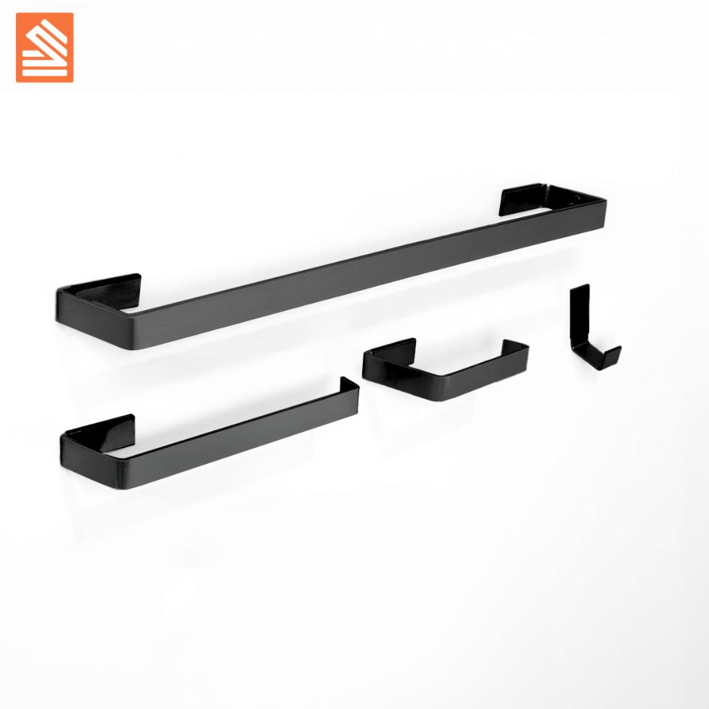 Kit de Acessórios para Banheiro Quadrado Preto Fosco Luxo S/S - 4 Peças