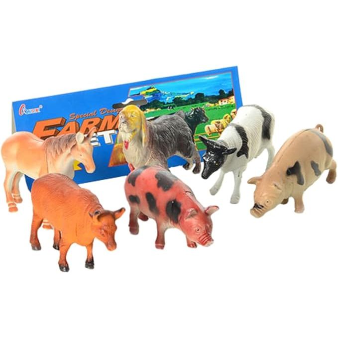 Kit de Animais da Fazenda Brinquedos de Borracha em Miniatura 6 unidades