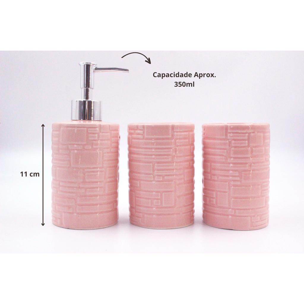 Kit de Banheiro (396) Cerâmica 3 Peças Porta Sabonete Líquido /Porta Algodão/Porta Escova - 396