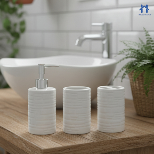 🛁 Kit de Banheiro em Cerâmica House Helper – 3 Peças com Design Moderno e Acabamento em Relevo Deixe seu banheiro ou lavabo mais bonito e organizado com o Kit de Banheiro em Cerâmica House Helper. Produzido em cerâmica com acabamento em relevo, o conjunto traz um toque sofisticado e contemporâneo para o ambiente, unindo elegância, praticidade e durabilidade. Com um design moderno e fácil de combinar, esse kit é ideal para quem busca transformar o espaço com charme e funcionalidade. ✔ O Kit Contém: 1 Porta Sabonete Líquido: 11 cm x 7 cm 1 Porta Escovas: 11 cm x 7 cm 1 Porta Algodão: 11 cm x 7 cm ✨ Diferenciais: Fabricado em cerâmica resistente e de alta qualidade Design moderno e elegante, com detalhes em relevo Ideal para banheiros e lavabos decorados com bom gosto Fácil de limpar e manter, sem perder o brilho e o charme Deixa o ambiente organizado e sofisticado O Kit de Banheiro House Helper é o toque de estilo e praticidade que seu espaço precisa — simples, funcional e cheio de elegância.