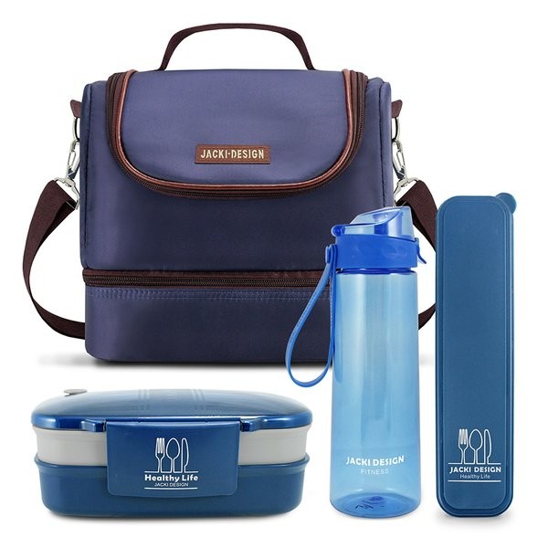 "Kit Completo de Alimentação e Conforto: Bolsa Térmica, Marmita, Garrafa e Porta Talheres Transforme sua rotina com este kit que une praticidade, estilo e funcionalidade. Ideal para quem busca carregar refeições e líquidos com segurança e elegância, seja no trabalho, na academia ou em viagens. Conheça cada item: Bolsa Térmica Perfeita para homens que querem manter seus alimentos frescos durante longas jornadas ou viagens, a bolsa térmica conta com dois compartimentos amplos e bem isolados. Sua composição multicamadas e folha de alumínio garantem a conservação da temperatura, enquanto o fecho em zíper e as alças removíveis proporcionam facilidade de transporte. Com design moderno e estampa lisa, combina praticidade e estilo em qualquer ocasião. Benefícios adicionais: Ideal para transportar lanches, frutas ou refeições completas. Fixa e fácil de carregar, resistente às condições do dia a dia. Mantém a temperatura por mais tempo, garantindo alimento fresco e delicioso. Marmita Organize suas refeições de forma prática e segura com a marmita de 1200 ml, que possui dois andares independentes. Confeccionada de material polipropileno de alta resistência, ela é ideal para levar alimentos variados sem misturar sabores. A tampa com fecho hermético evita vazamentos, tornando o transporte sem preocupações. Livre de BPA e com a qualidade garantida Jacki Design, é perfeita para o almoço no trabalho, escola ou atividades ao ar livre. Dicas de uso: Prepare suas refeições na noite anterior e aproveite o dia com praticidade. Fácil de limpar e resistente ao uso diário. Leve opções variadas, desde saladas e pratos quentes até snacks. Garrafa A garrafa squeeze de 700 ml foi pensada para quem quer estar bem hidratado em qualquer lugar. Com trava de segurança, ela evita vazamentos e acidentes, enquanto a alça de silicone facilita o transporte. Leve, resistente e estilizada, mantém suas bebidas na temperatura ideal por mais tempo, seja na academia, trabalho ou passeio. Vantagens: Leve e fácil de carregar, cabe na bolsa ou mochila. Perfeita para água, sucos ou isotônicos. Prática de usar e limpar, com design moderno. Porta Talheres Transportar seus utensílios com higiene nunca foi tão fácil com o Porta Talheres Jacki Design. Compacto e feito de material polipropileno, garante a organização dos talheres, além de proteger contra sujeira e contaminantes. Sua facilidade de limpeza aliada ao design compacto faz dele um acessório indispensável para trazer segurança às suas refeições. Recomendações: Ideal para levar na bolsa ou mochila. Organize seu talher de forma prática e higiênica. Compacto, cabe até mesmo na bolsa de trabalho ou mochila escolar. Invista em praticidade e organização com este kit completo, facilitando seu dia a dia com produtos que unem qualidade, estilo e funcionalidade. Leve sua rotina para o próximo nível!" Acompanha o produto: • 1 bolsa termica 1 marmita 1 garrafa 1 porta talher