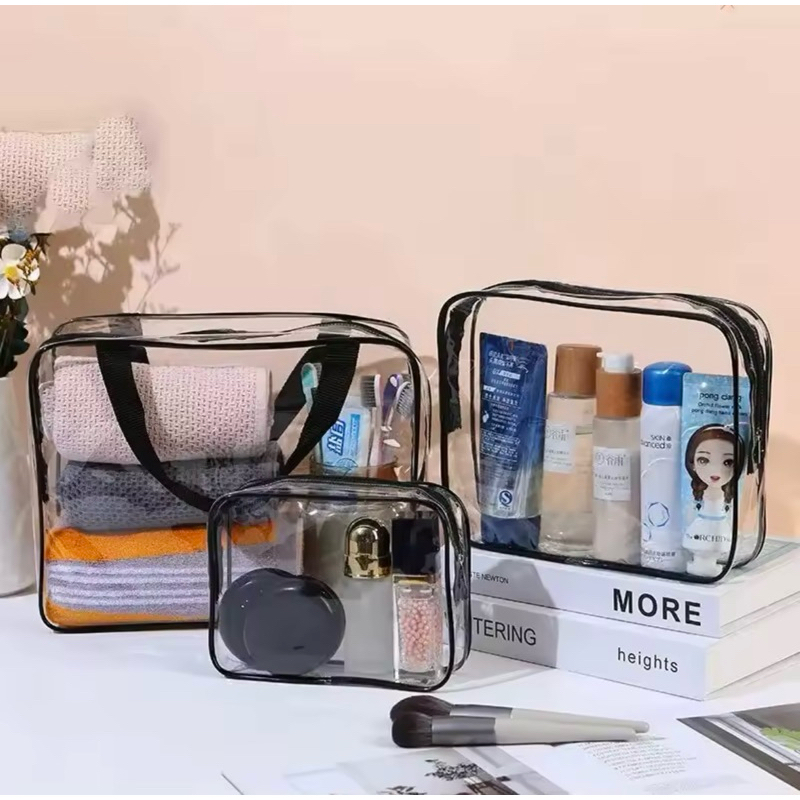 Práticas e versáteis, essas nécessaires transparentes são ideais para organizar acessórios, produtos de higiene, maquiagem e itens de viagem. Com fechamento em zíper e bordas reforçadas, oferecem fácil visualização do conteúdo e acesso rápido aos seus itens. O kit vem com três ou dois tamanhos diferentes, se adaptando perfeitamente às suas necessidades no dia a dia, na bolsa ou na mala. Leve, funcional e com design moderno. Kit 2 peças: Uma peça tamanho P 12x18x5 cm Uma peça tamanho M 16x21x7 cm Kit 3 peças: Uma peça tamanho P 14x17x4 cm Uma peça tamanho M 20x23x5 cm Uma peça c/ alça tamanho G 22x29x10 cm