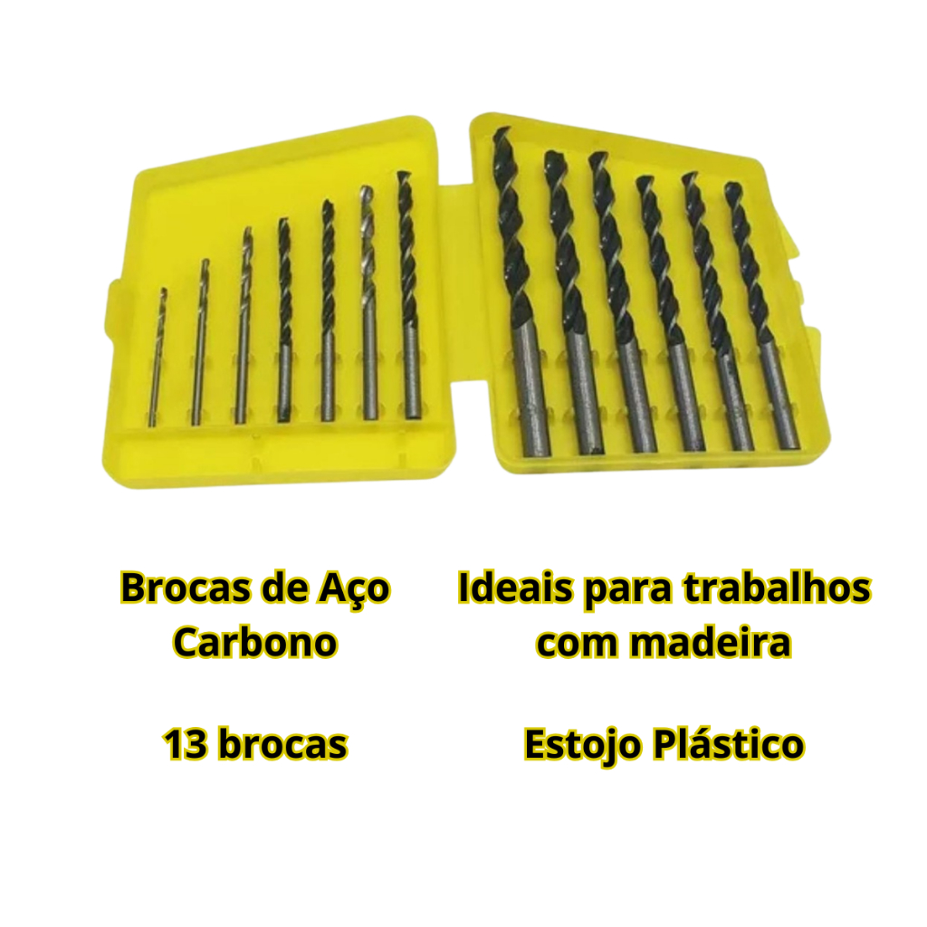 Kit de Brocas com 13 Peças em Aço Carbono para Madeira