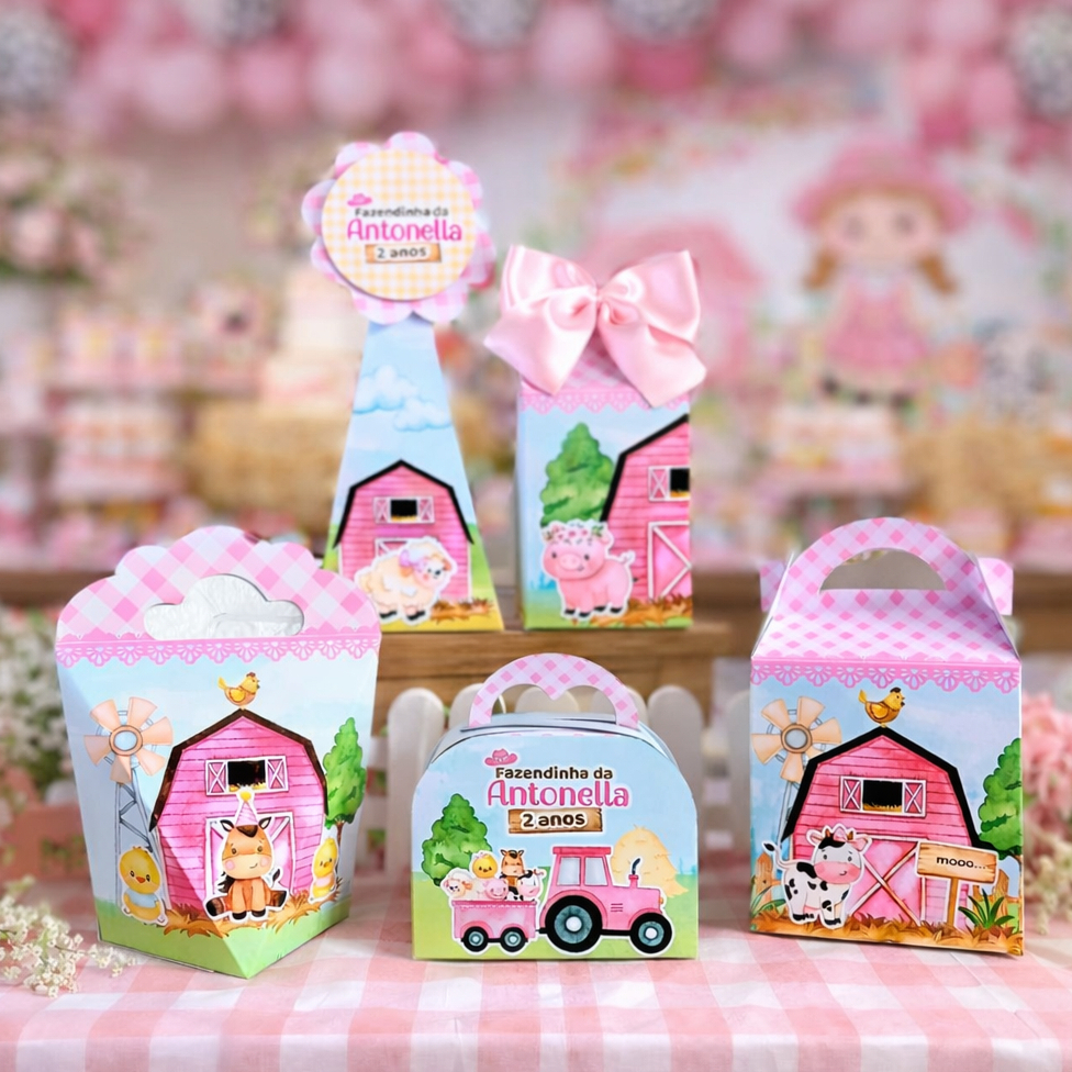 KIT de Caixinhas Personalizadas Fazendinha Menina / Lembrancinha/ Decoração/ Kit Festa - PEGUE E MONTE
