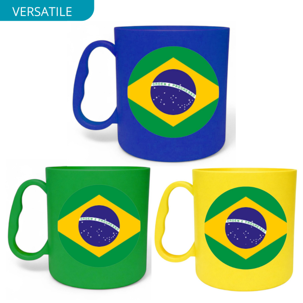 Caneca Plástica Brasil 440ml - Especial Copa do Mundo Garanta já o seu acessório indispensável para esta Copa! Nossa caneca une a praticidade do plástico (ideal para eventos e áreas de piscina) com o orgulho de ser brasileiro. O adesivo da bandeira possui cores vibrantes e excelente fixação. Diferenciais: Segurança: Material leve e inquebrável. Volume: 440ml. Uso: Ideal para festas, brindes corporativos ou uso pessoal. Pronta entrega: Envio imediato para você não perder nenhum jogo!