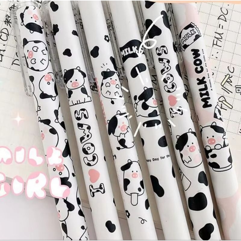 Canetas Fofas em Gel com estampa lindas de vaquinhas com 6 unidades Tinta cor Preta