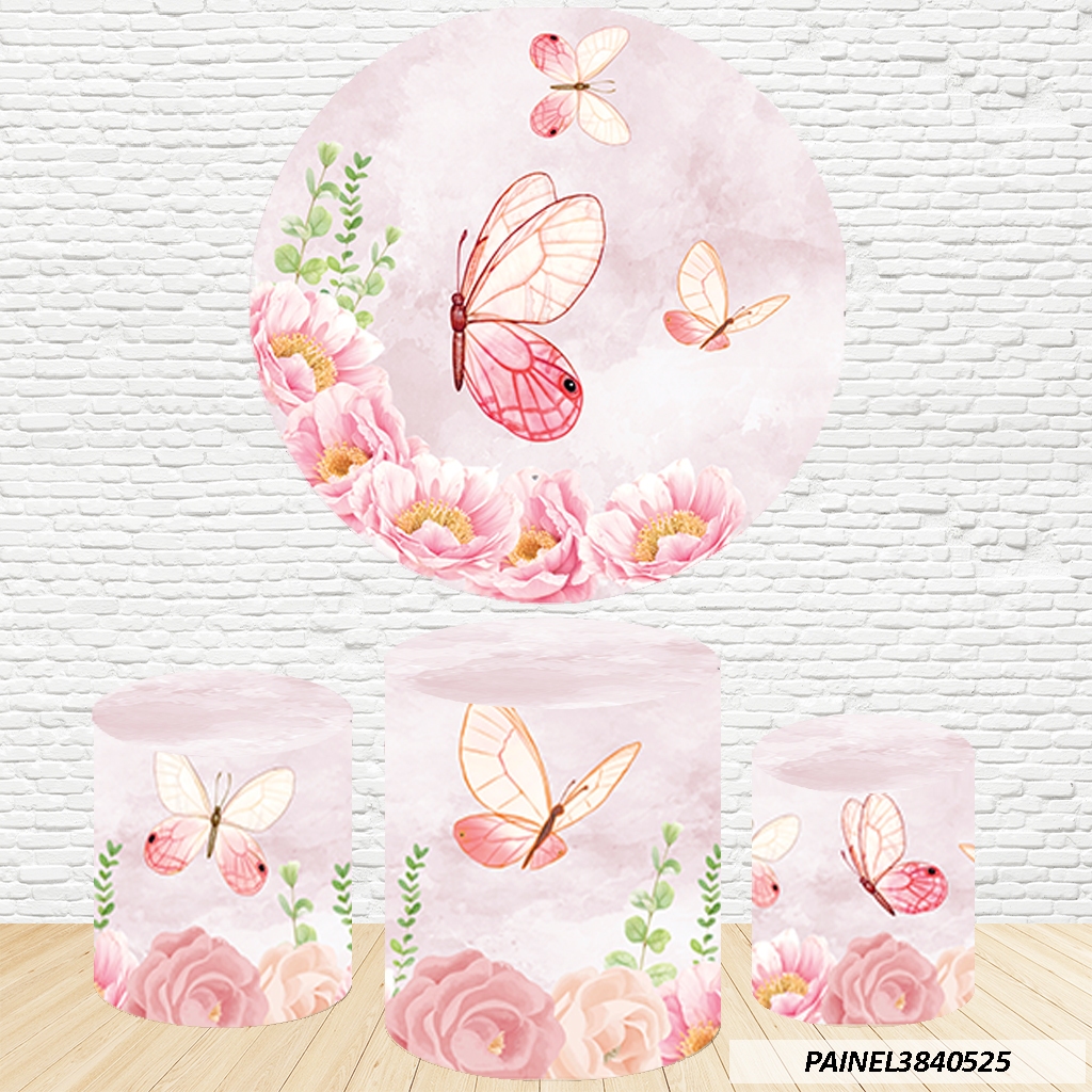 Kit de Capa de Painel Redondo Sublimado Borboletas 1,50M + Trio Capas de Cilindro C/Elástico