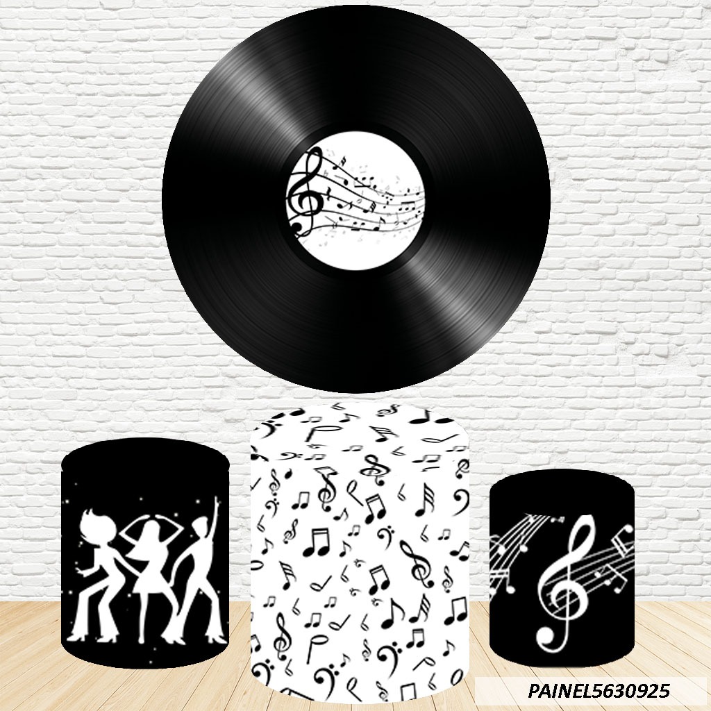 Kit de Capas Painel Redondo Sublimado Anos 80s 1,50M +Trio Capas de Cilindro C/Elástico
