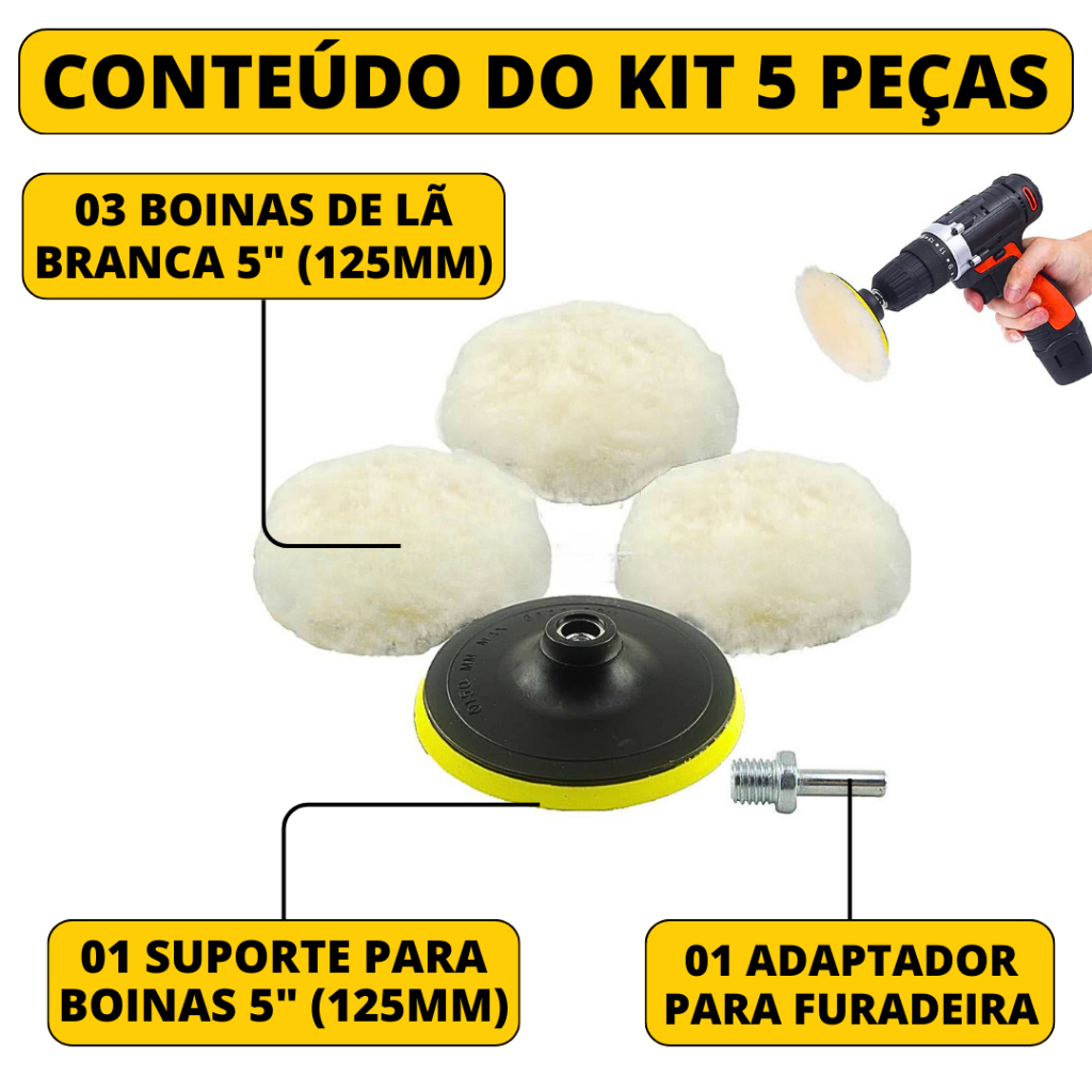 ✔Instruções de compra: 1. Envio em 24 horas após o pedido, com envio de São Paulo. 2. Atendimento ao cliente disponível 24 horas por dia para tirar dúvidas. 3. Todos os produtos são 100% compatíveis e possuem certificados de Conformidade de conformidade. Faça sua compra com confiança. 4. Devoluções gratuitas em caso de problemas de qualidade do produto. Kit Almofada de Polimento de Lã Automotiva 125mm de 5 polegadas com Suporte Velcro para Polidor, Chave de fenda e Furadeira Com as almofadas que você pode fazer o trabalho de polimento. - Feito para polir a carroceria do seu carro ou o tanque de sua motocicleta, faróis, rodas, vidros, peças internas, entre outros. Pode ser usado também para polir madeira, cerâmica, vidro ou outros materiais. O kit possui 5 peças: Boinas de lã branca de 125mm (5" polegadas) Suporte para Boina 125mm (5" Polegadas) - 01 Suporte para Boina 125mm (5" Polegadas) Adaptador parafusadeira ou chave de fenda - 01 Broca ou chave de fenda Tamanho da BERET: 5" Polegadas - Aproximadamente 12,5cm