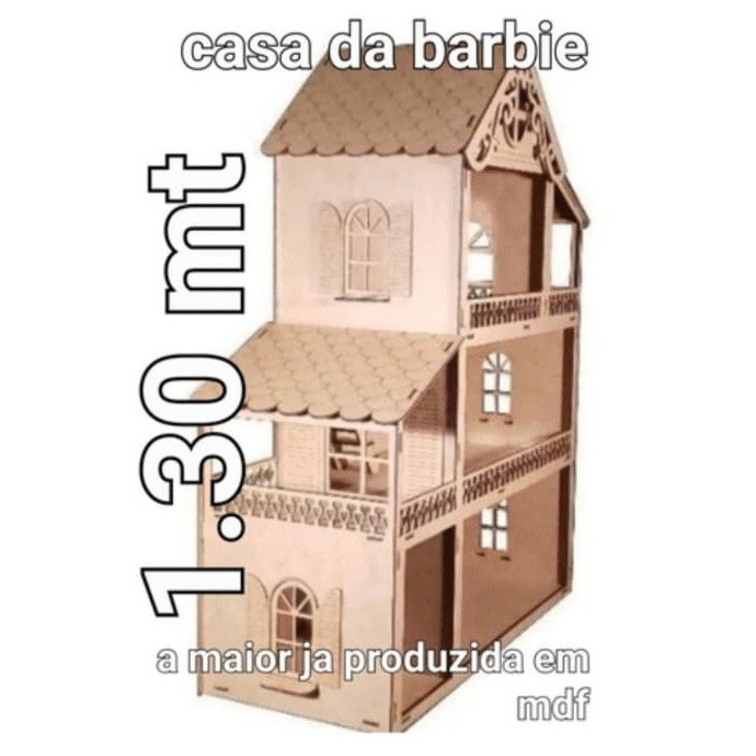 ✨ CASINHA DE MDF COM MÓVEIS – 1,30m DE ALTURA ✨ Encante as crianças com essa casinha de boneca em MDF de 1,30 metro de altura, perfeita para estimular a criatividade, imaginação e horas de diversão! Produzida em MDF de alta qualidade, a casinha possui estrutura firme, design charmoso e tamanho impressionante, sendo uma das maiores da categoria. Para deixar a brincadeira ainda mais completa, o produto acompanha kit de móveis, permitindo montar e decorar todos os ambientes do jeitinho que a criança imaginar. 🏠🧸 Ideal para brincar, decorar quartos ou até projetos personalizados de pintura e decoração. 📏 Especificações: Altura da casinha: 1,30 metro Material: MDF Acompanha: Kit de móveis Produto resistente e durável ⚠️ ATENÇÃO – LEIA ANTES DA COMPRA: O produto é enviado desmontado, para evitar avarias no transporte. Devido ao seu tamanho, não é possível enviar montado. A montagem é simples e prática. 💡 Uma escolha perfeita para quem busca um brinquedo grande, bonito e cheio de possibilidades!