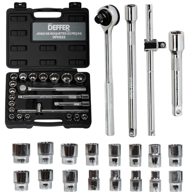 Kit de Chave Catraca Profissional Com 22 Soquetes Reversível 1/2 Polegada - DEFFER