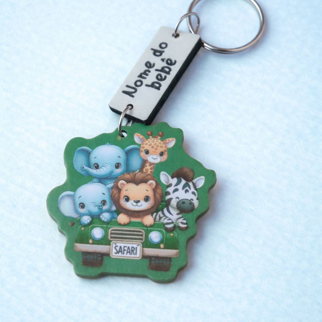 Kit de Chaveiros Safari Em Mdf Adesivado Com Nome Personalizado