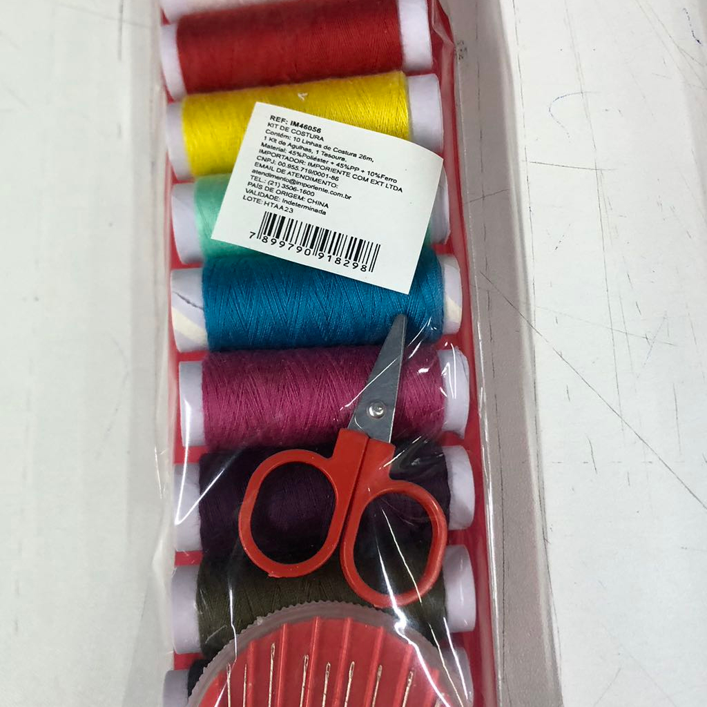 Kit de costura. Com 10 Linhas, 10 Agulhas e 1 Tesoura