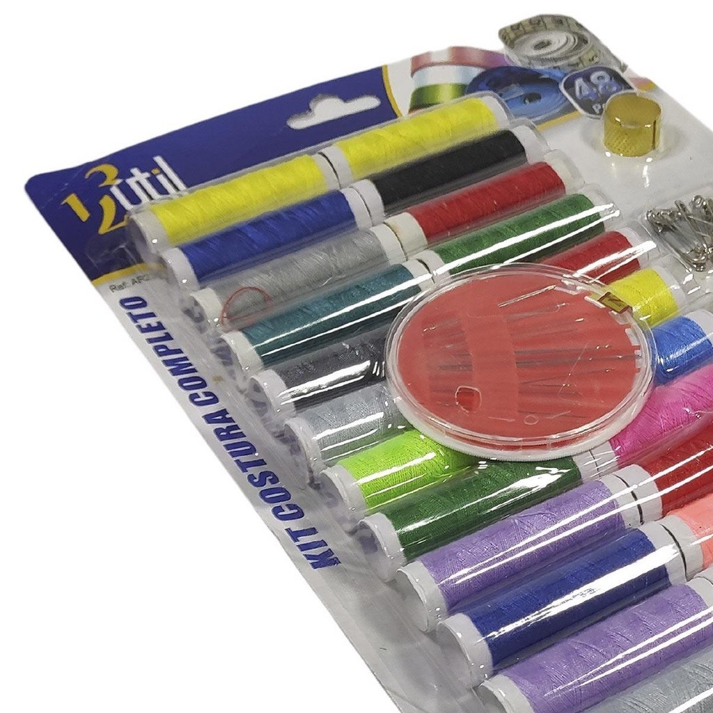 Kit de Costura Completo com 48 Peças AR25 Detalhes do Produto: Linhas: Vem com uma variedade de linhas coloridas para costura e reparos; Alfinetes para fixação temporária; Fita métrica e tesoura: O conjunto contem fita métrica flexível e tesoura para cortar tecidos. Medidas: 20mm x 190mm x 280mm. Marca: EVALD | 123Útil Referência: AR25 Garantia: 3 Meses *Imagens meramente ilustrativas.