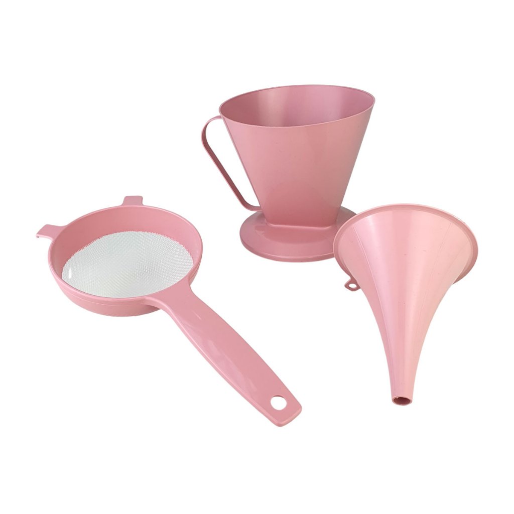 Kit de Cozinha Peneira, Funil e Filtro de Café em Rosa 3 Peças