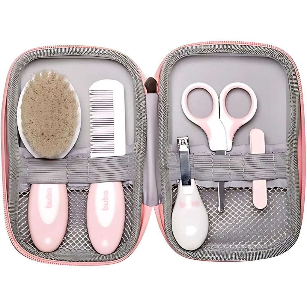 DESCRIÇÃO DO PRODUTO: O Kit cuidados com estojo rosa da Buba foi desenvolvido para cuidar com delicadeza e segurança dos pequenos. Possui tesoura com pontas arredondadas, cortador de unhas, pente, escova, Lixas e um estojo elegante e super prático para armazenar e facilitar o transporte em suas viagens. CARACTERÍSTICAS TÉCNICAS: Conteúdo da Embalagem: 1 tesoura com pontas arredondas, 1 cortador de unhas, 3 lixas, 1 escova com cerdas naturais, 1 pente e 1 estojo rosa. Dimensões Aproximadas do Produto: 7cm x 13cm x 19cm (Altura x Largura x Comprimento/Profundidade). Dimensões Aproximadas da Embalagem: 7cm x 13cm x 19cm (Altura x Largura x Comprimento/Profundidade). Material/Composição: Estojo: 55% acetato de vinila (EVA), 30% Polietileno (PE), 5% agente de espuma, 10% aditivos, polipropileno (PP), pliuretano (PU), poliéster, Borracha, liga de zinco; Pente: Parte branca: 100% polipropileno (PP), parte Rosa: 100% elastômero termoplástico (TPE); escova: parte branca: 100% polipropileno (PP), parte rosa: 100% elastômero termoplástico (TPE), cerdas naturais: 100% lã, Tesoura: parte branca: 100% polipropileno (PP), parte rosa: 100% Elastômero termoplástico (TPE), corte: 100% aço inoxidável, cortador de unhas: cabo 100% acrilonitrila Butadieno estireno (ABS), cortador: 100% aço 2Cr13, Lixa de unha: 100%Madeira. Idade Mínima Recomendada: A partir de 0 meses. Participantes: A partir de 1 pessoa Alimentação: Não se aplica Marca: Buba Referência: 19601 Outras informações: As cores podem variar entre as imagens mostradas acima e o produto. Imagens meramente ilustrativas. Aviso: As informações e imagens divulgadas são de total responsabilidade do fabricante/fornecedor. Produto lacrado e disponível a pronta entrega para todo Brasil! APROVADO PELO INMETRO