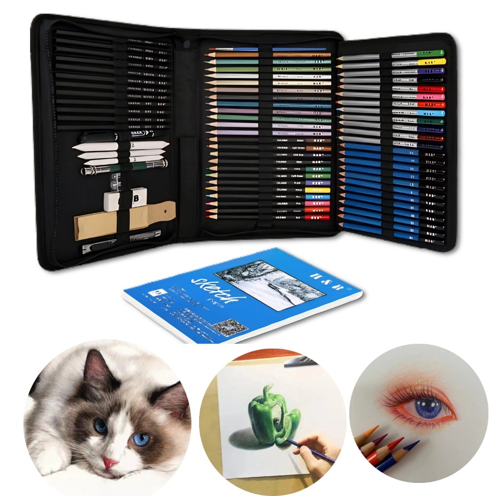Kit de Desenho Completo 35/71/96/145 Peças – Profissional para Arte, Sketch e Sombreamento