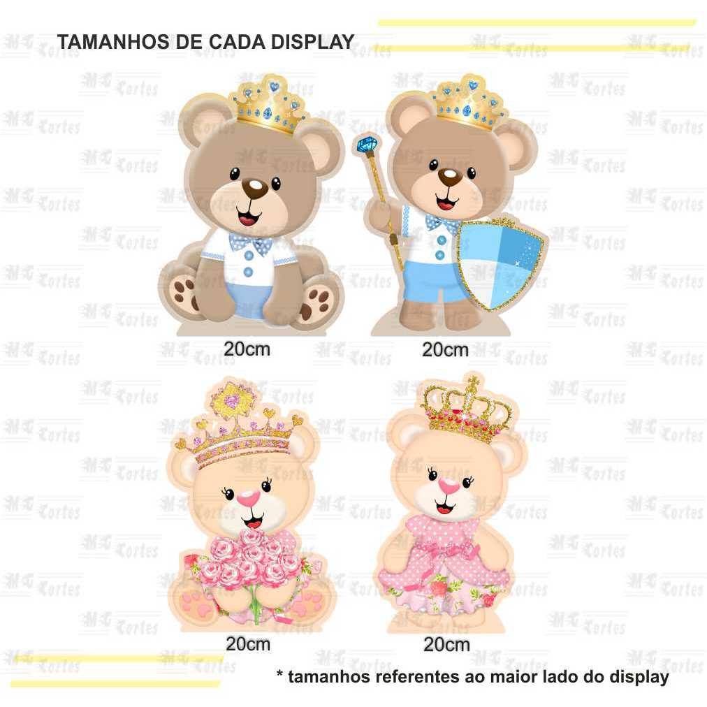 Kit de Display 4 de 20cm Totens para Decoração de Festa Chá Revelação Ursinho MDF Cortado a Laser