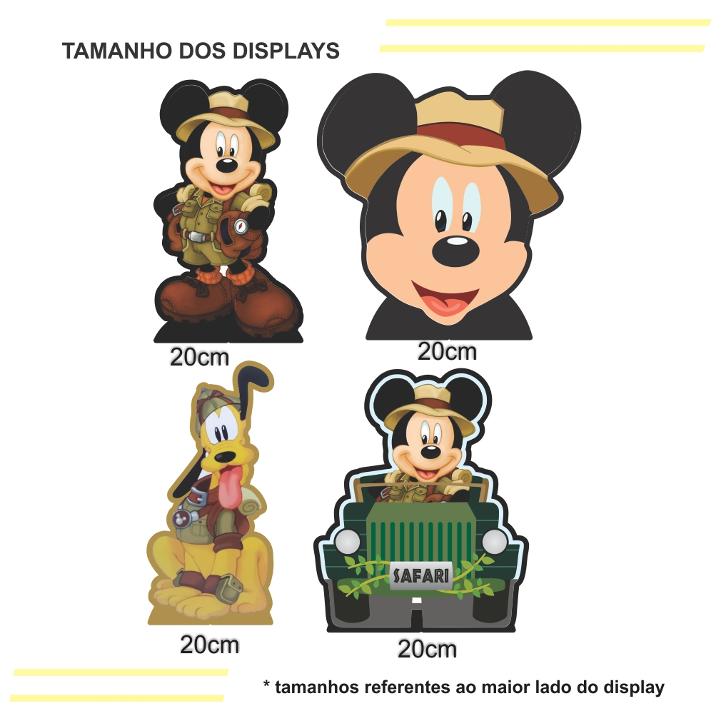 Kit de Display 4 de 20cm Totens para Decoração de Festa Mickey Safari em MDF Cortado a Laser