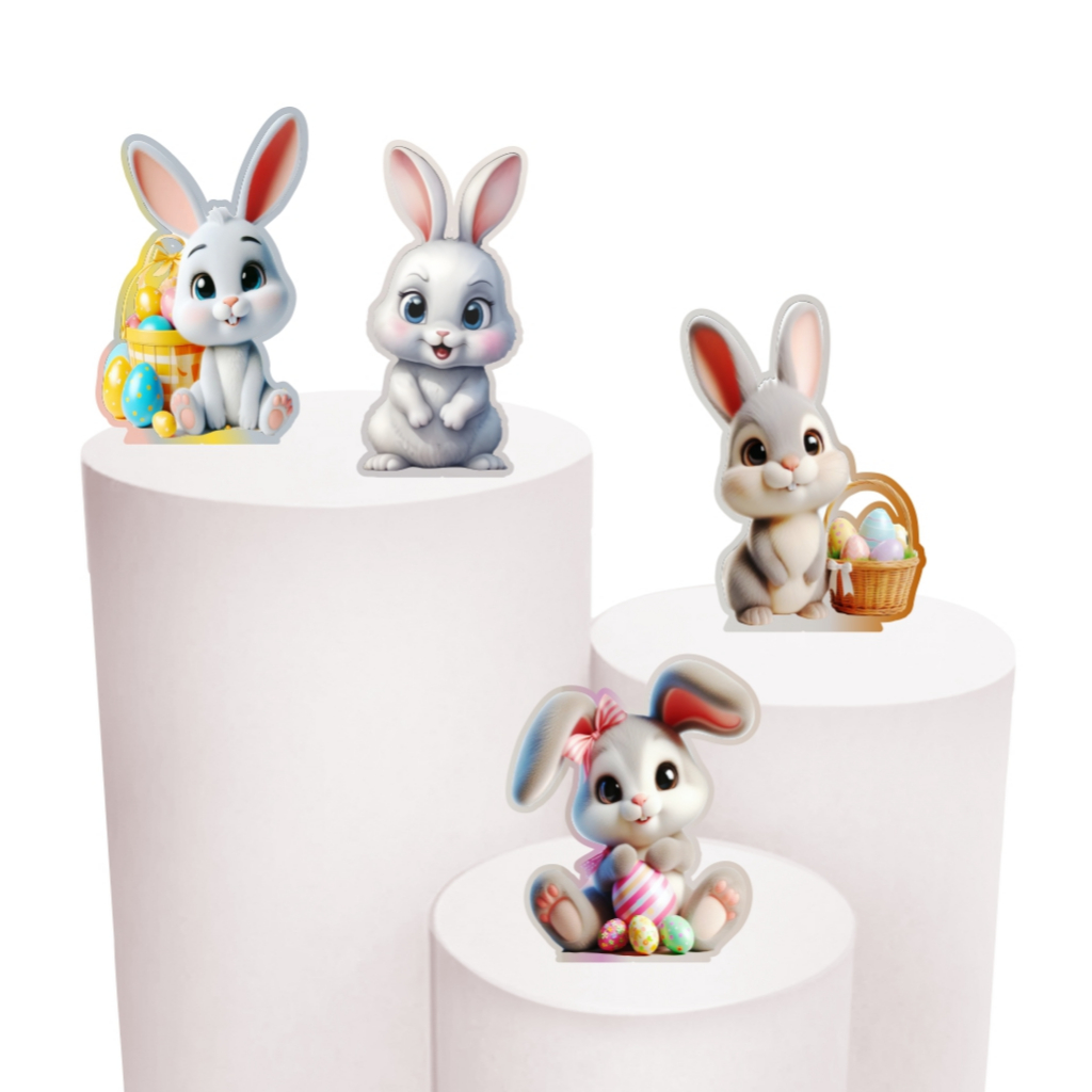 Kit de Display 4 de 20cm Totens para Decoração de Festa Páscoa e Coelho em MDF Cortado a Laser