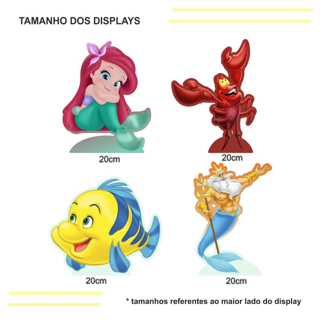 Kit de Display 4 de 20cm Totens para Decoração de Festa Princesa Ariel Cute em MDF Cortado a Laser