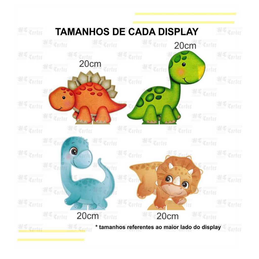 Kit de Display 4 Totens de 20cm para Decoração de Festa dinossauro Dino Baby